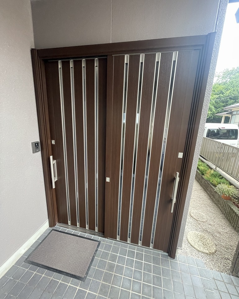 前回の外壁工事の際にも心残りだった玄関も、やっぱりキレイにしたいというご要望におこたえさせてもらいました